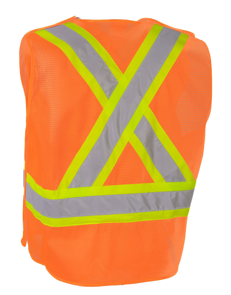This lightweight, budget-friendly safety vest is designed for essential visibility and quick-release safety. Made with breathable 100% polyester mesh, it features a 5-point tear-away system, front Velcro closure, and 4" reflective tape with contrast backing for enhanced visibility in demanding work environments.