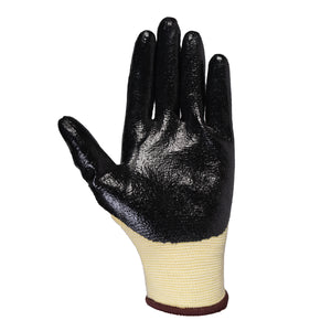 Experience unmatched protection with our Cut-resistant Aramid Work Gloves. Featuring a black nitrile palm coating and a stretch Aramid liner, these gloves offer comfort and durability. Ideal for sharp-edged materials, they provide excellent grip and are perfect for light oil applications.