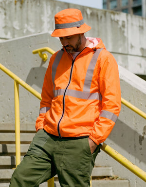 Built for shifting conditions, this hi-vis packable windbreaker delivers lightweight weather protection with a 10,000mm waterproof membrane and sealed seams. Durable ripstop fabric balances strength and comfort, while reflective details boost visibility. It packs into its own pocket when the weather clears.
