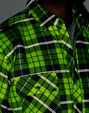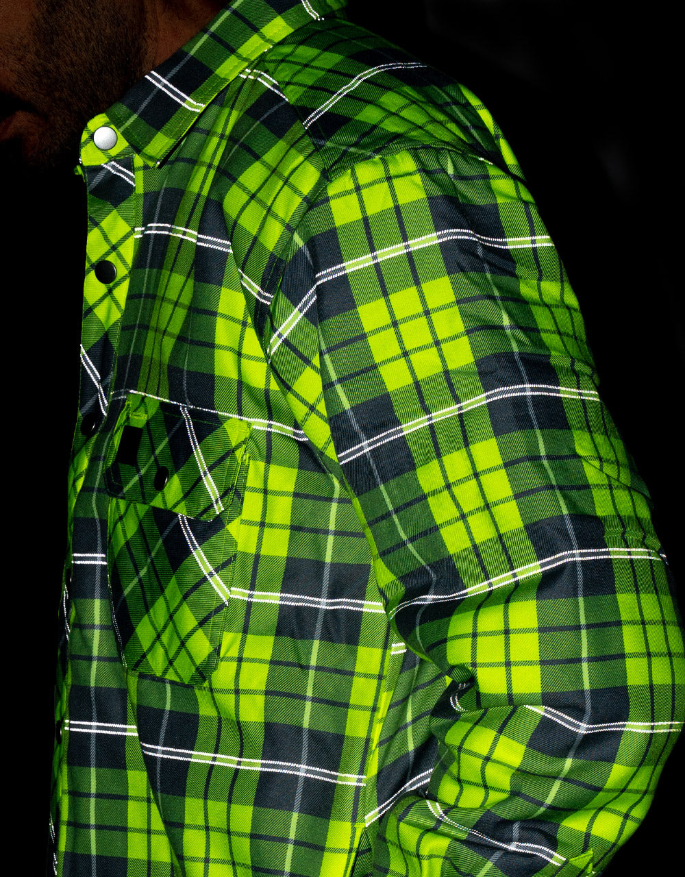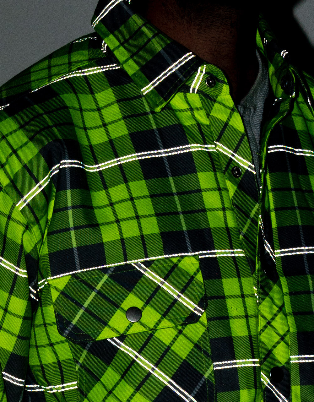 Forcefield Hi Vis Plaid Unlined Flannel Shirt Jacket with Reflective Striping