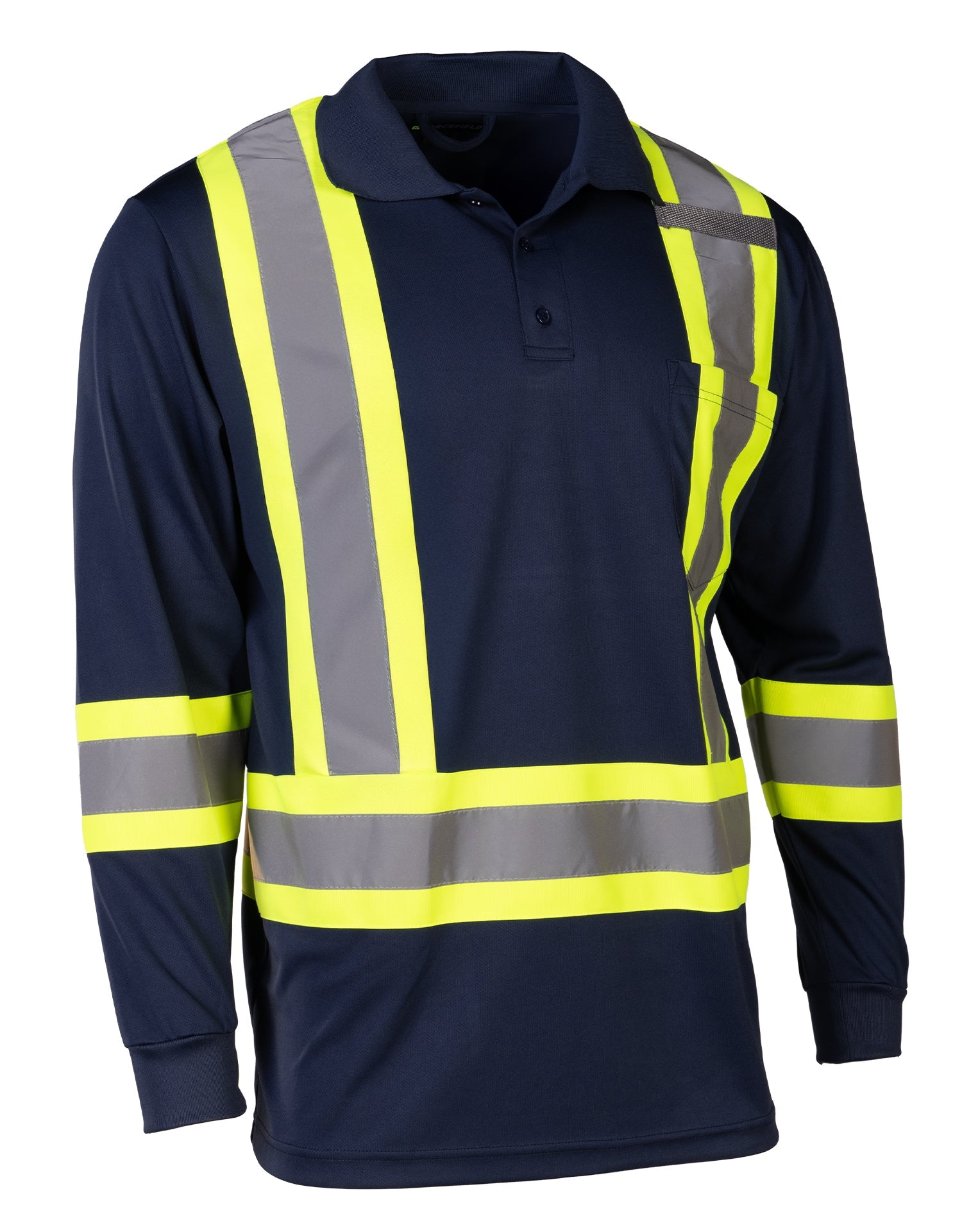 Built for demanding job sites, this Hi-Vis Long Sleeve Polo Tee delivers all-day comfort and dependable visibility. Made from breathable 100% polyester birdseye knit, it stays lightweight and moisture-wicking through long shifts. High-contrast 4” reflective tape provides 360° visibility, while the chest pocket and radiophone clip strap add practical, job-ready functionality without restricting movement.