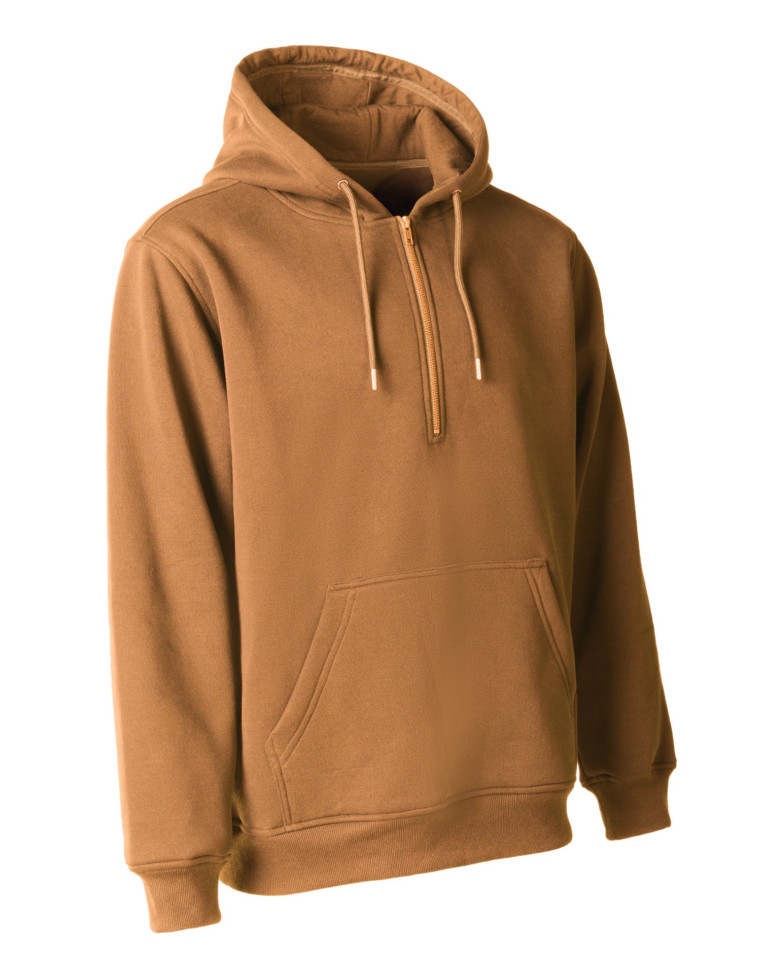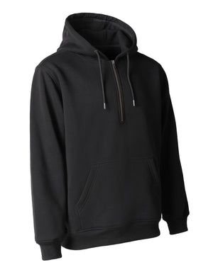 The Pullover Cotton Blend Fleece Half-Zip Hoodie blends warmth and utility with a heavyweight fleece build and easy-access half-zip. Featuring a soft interior, durable antipill fabric, metal drawstring tips, and a classic kangaroo pocket, this hoodie’s made for comfort without sacrificing function or style.